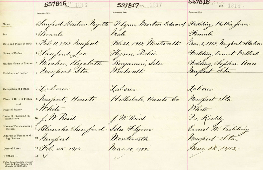 Female Birth Registration: Year: 1912 number: 55700816