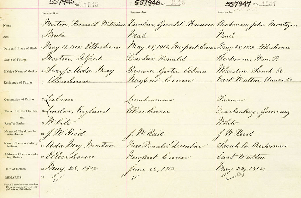 Male Birth Registration: Year: 1912 number: 55700945