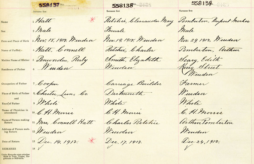 Male Birth Registration: Year: 1912 number: 55800139