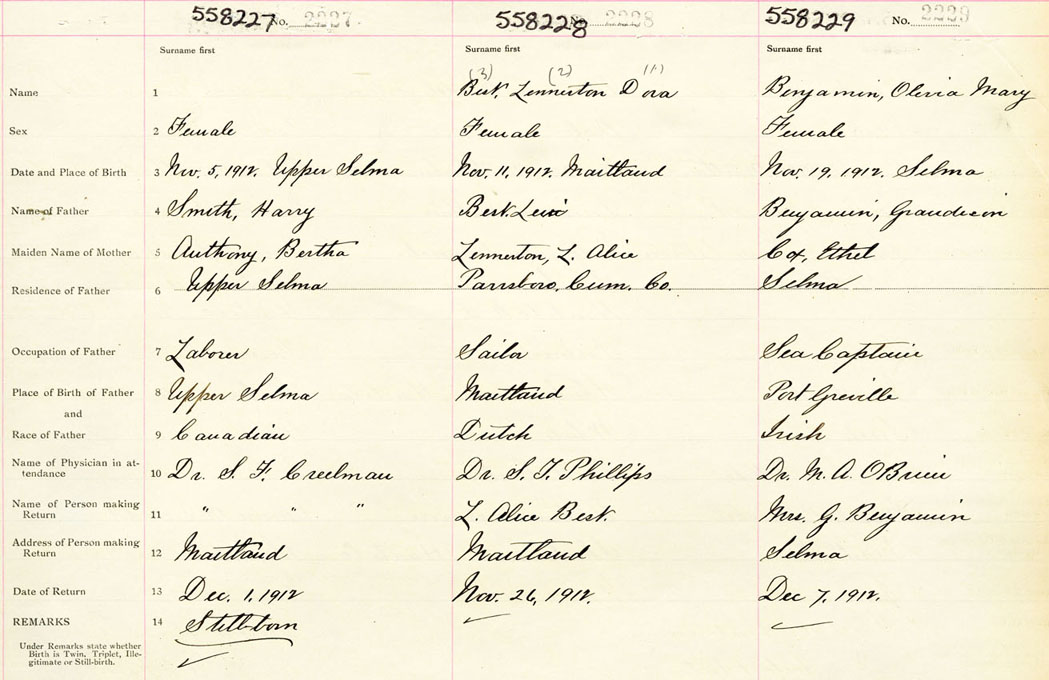 Female Birth Registration: Year: 1912 number: 55800229