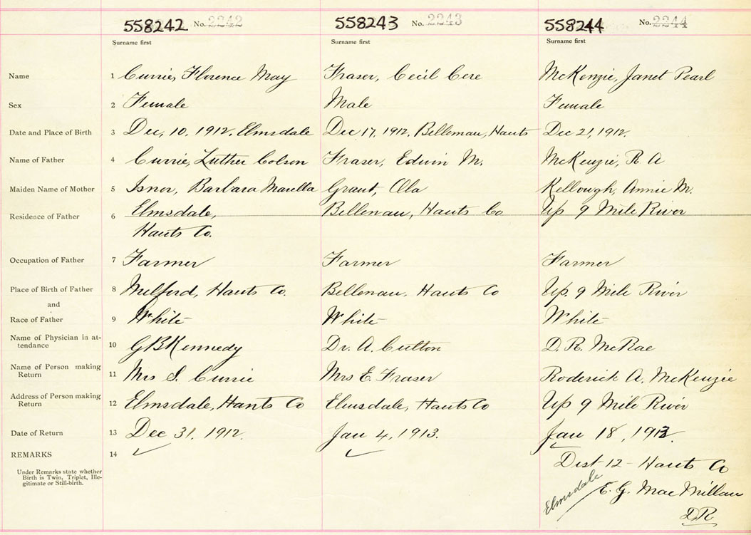 Female Birth Registration: Year: 1912 number: 55800242