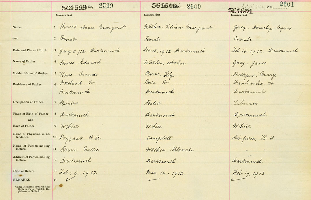 Female Birth Registration: Year: 1912 number: 56100601