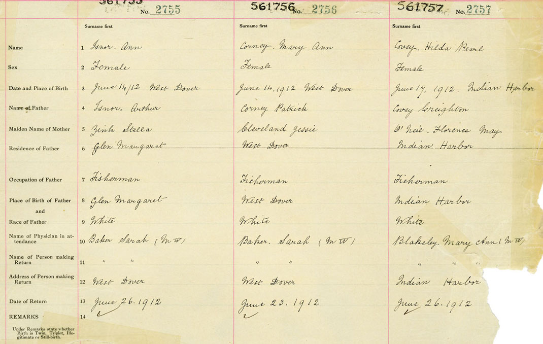 Female Birth Registration: Year: 1912 number: 56100755