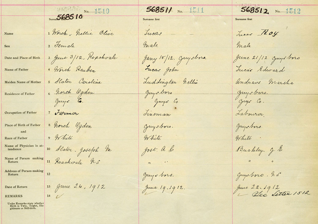 Female Birth Registration: Year: 1912 number: 56800510