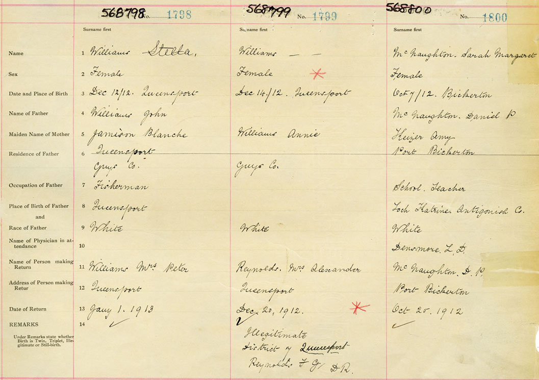 Female Birth Registration: Year: 1912 number: 56800798