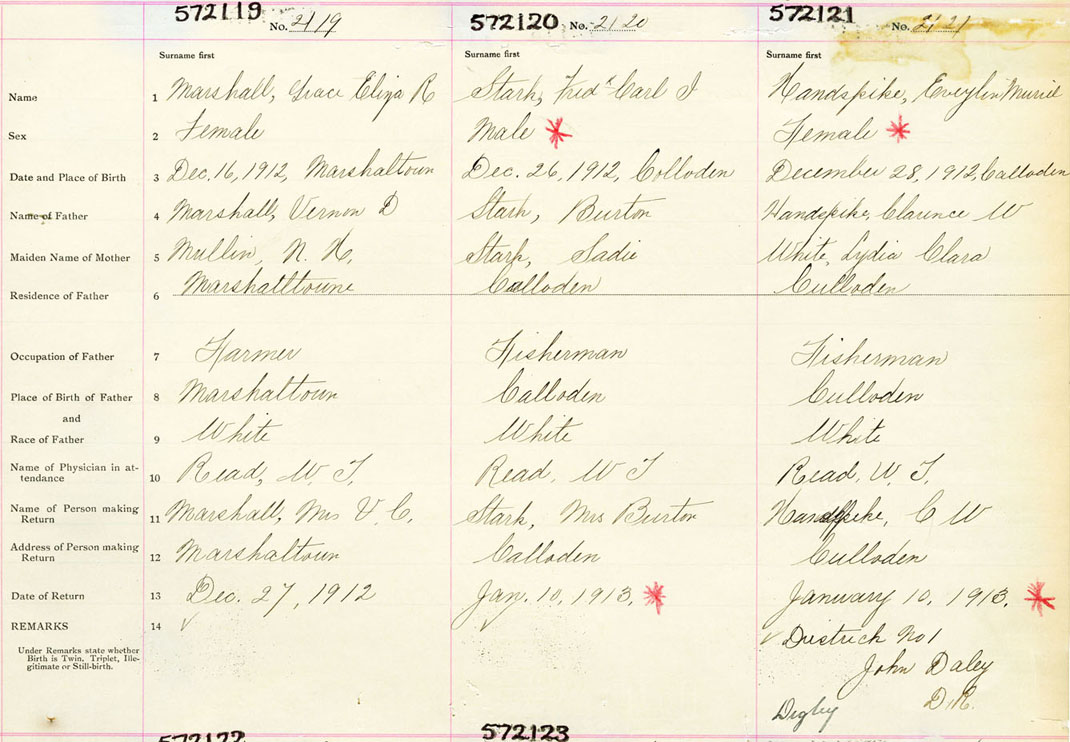 Female Birth Registration: Year: 1912 number: 57200121