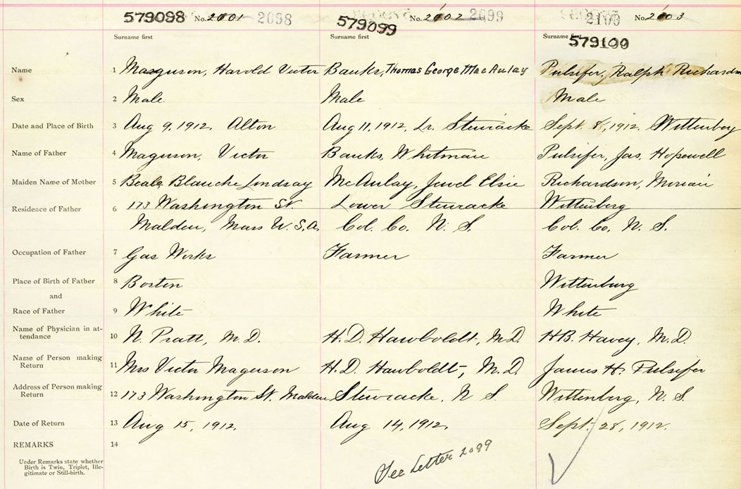 Male Birth Registration: Year: 1912 number: 57900098