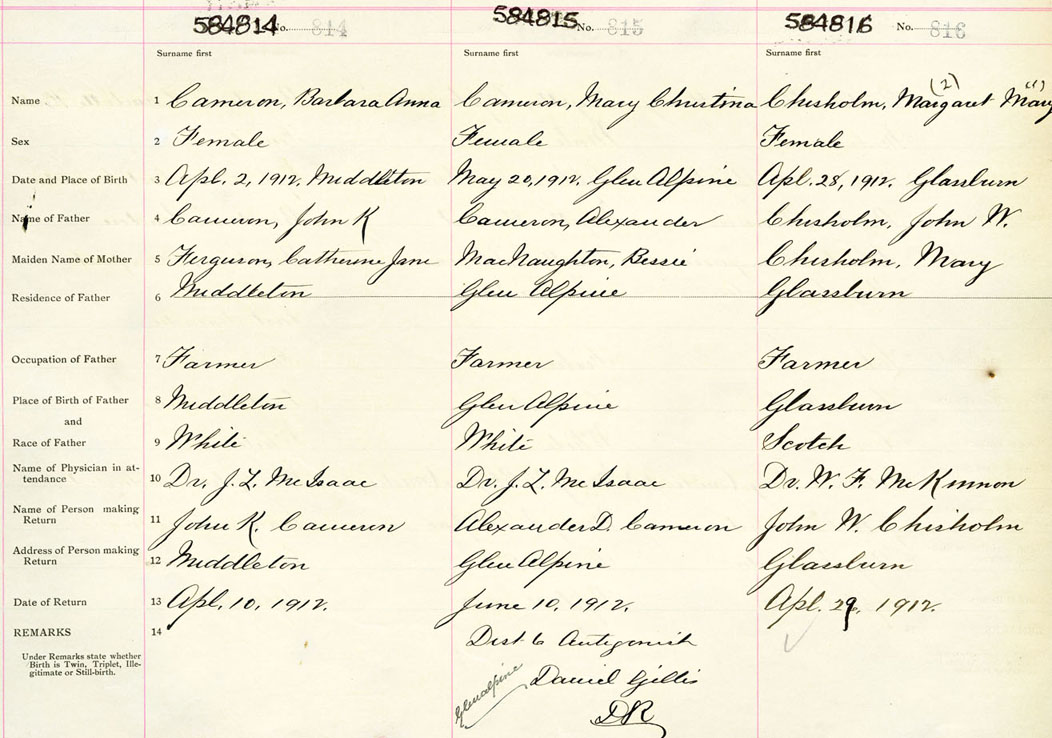 Female Birth Registration: Year: 1912 number: 58400816