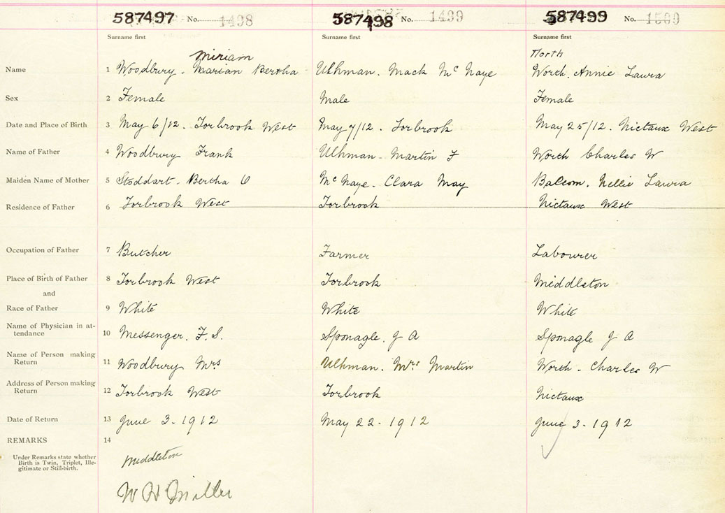 Female Birth Registration: Year: 1912 number: 58700497