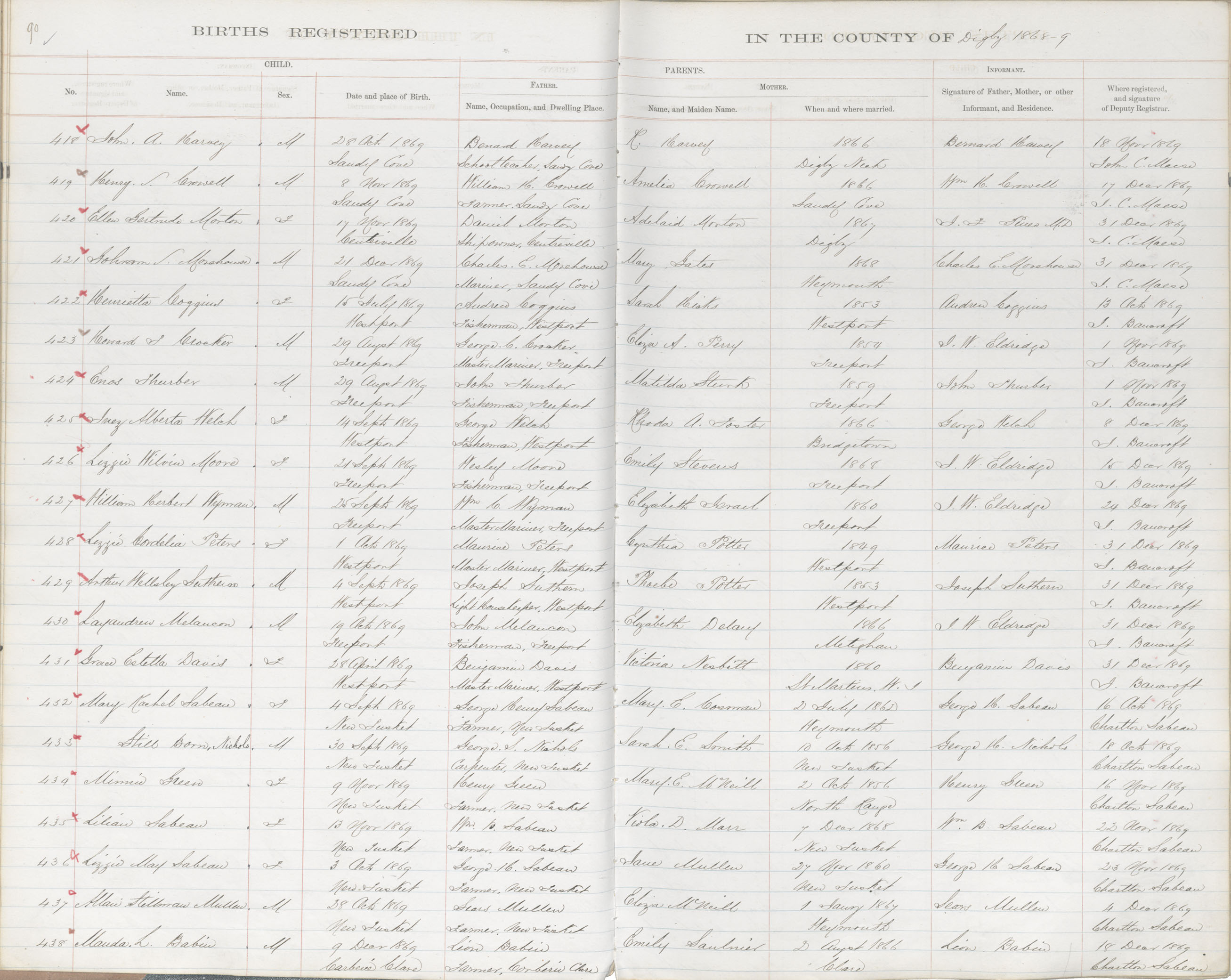 Birth Registration: Year: 1869 book: 1807 page: 90 number: 421