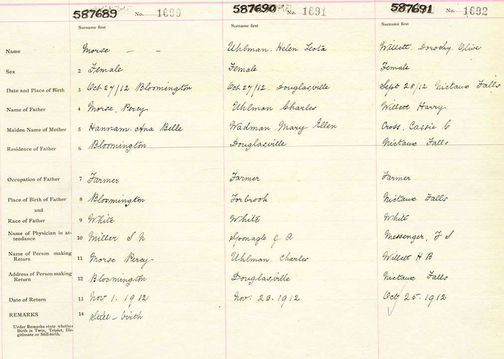 Female Birth Registration: Year: 1912 number: 58700691