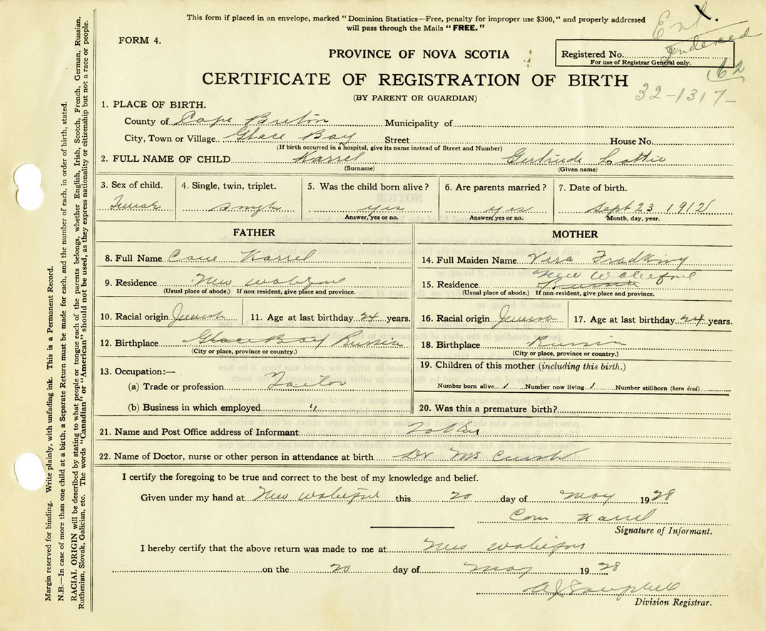 Nova Scotia Archives — https://archives.novascotia.ca/vital-statistics/birth/?ID=284564