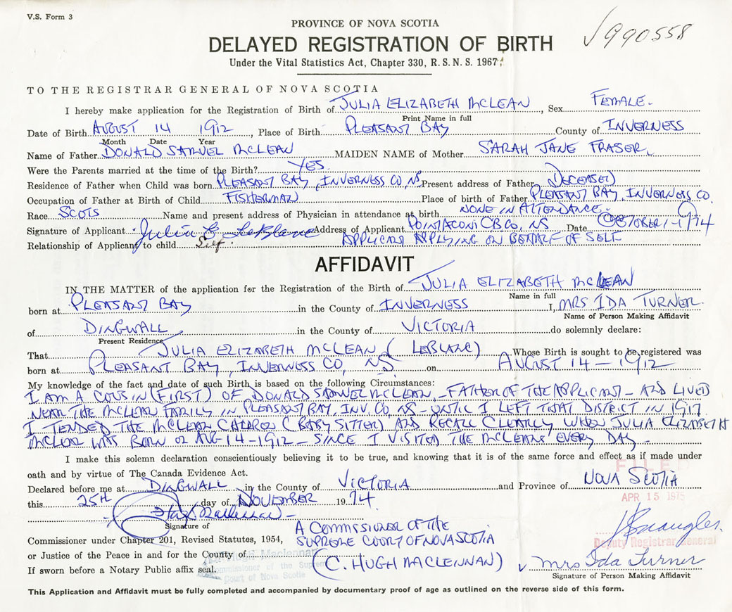 Nova Scotia Archives — https://archives.novascotia.ca/vital-statistics/birth/?ID=285309