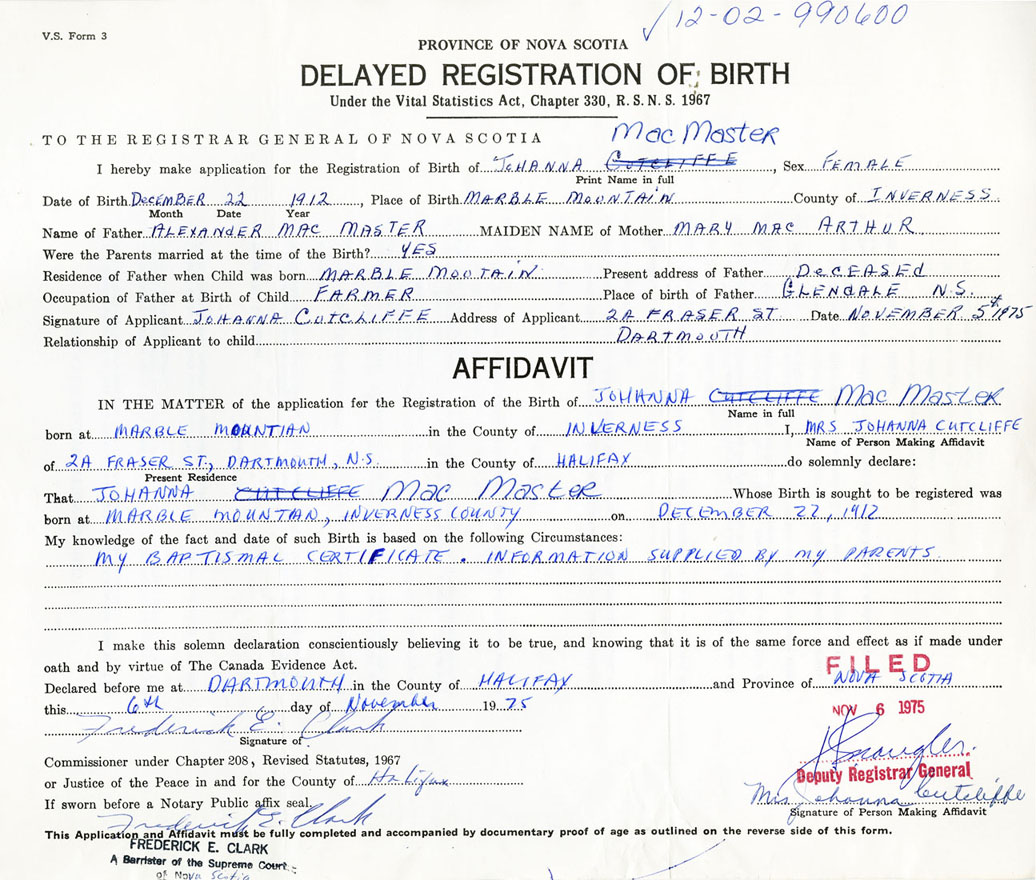 Nova Scotia Archives — https://archives.novascotia.ca/vital-statistics/birth/?ID=285350