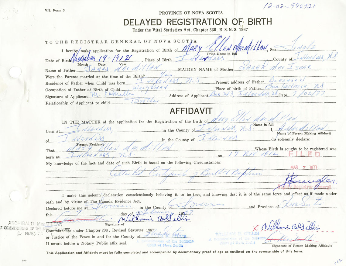 Nova Scotia Archives — https://archives.novascotia.ca/vital-statistics/birth/?ID=285461