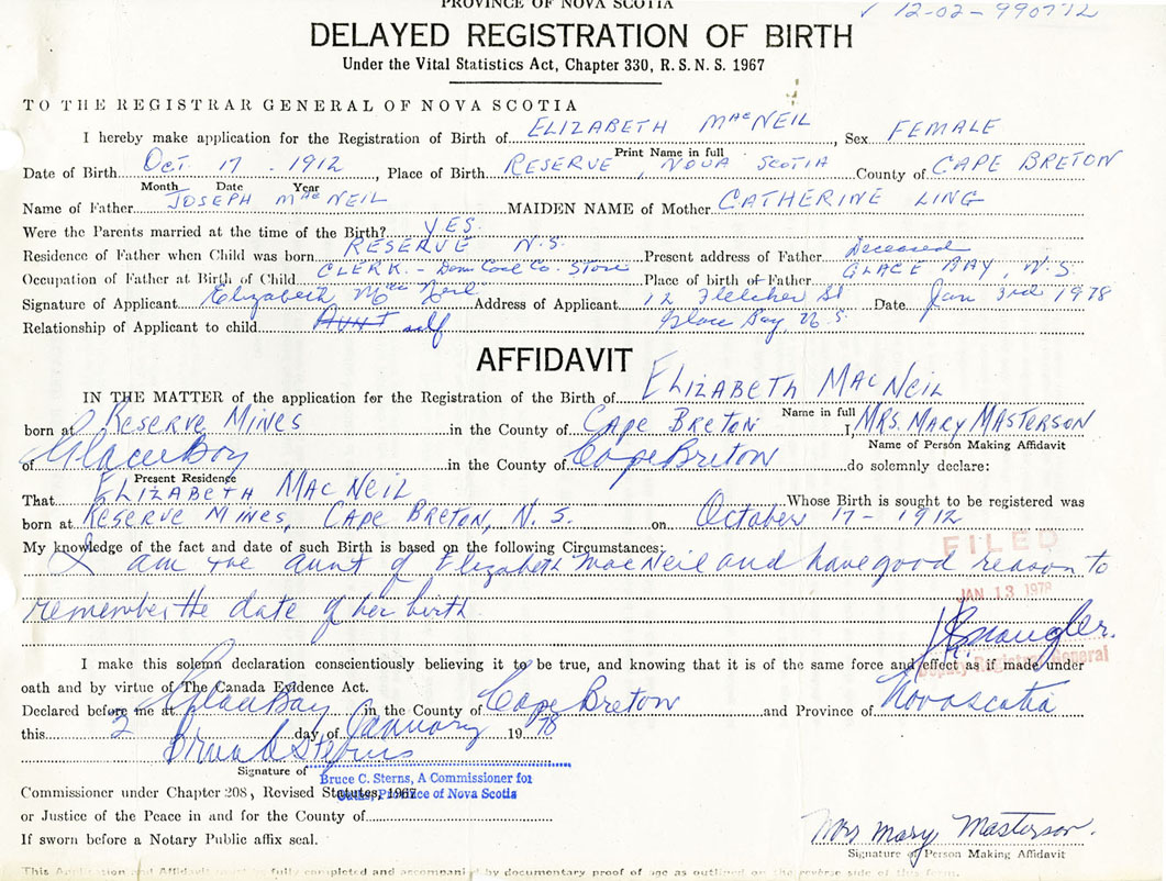 Nova Scotia Archives — https://archives.novascotia.ca/vital-statistics/birth/?ID=285512