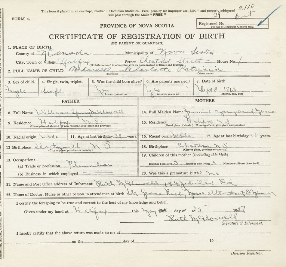 Nova Scotia Archives — https://archives.novascotia.ca/vital-statistics/birth/?ID=285566