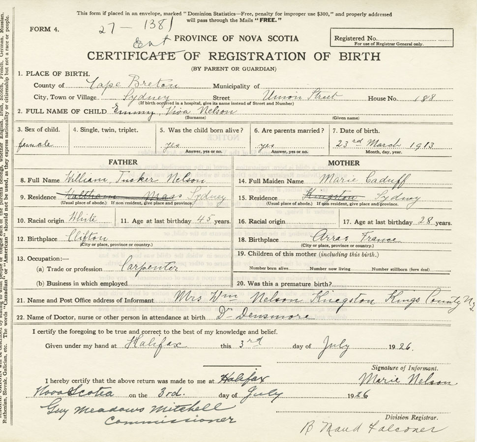Nova Scotia Archives — https://archives.novascotia.ca/vital-statistics/birth/?ID=285577