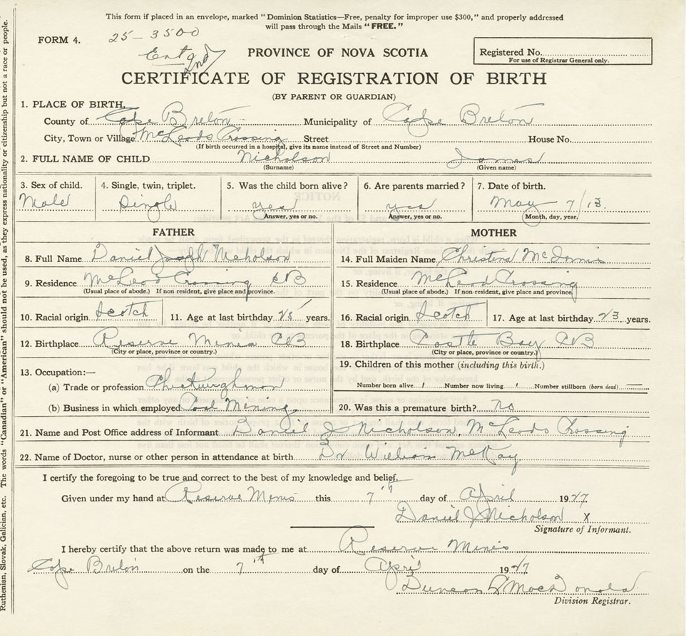 Nova Scotia Archives — https://archives.novascotia.ca/vital-statistics/birth/?ID=285578