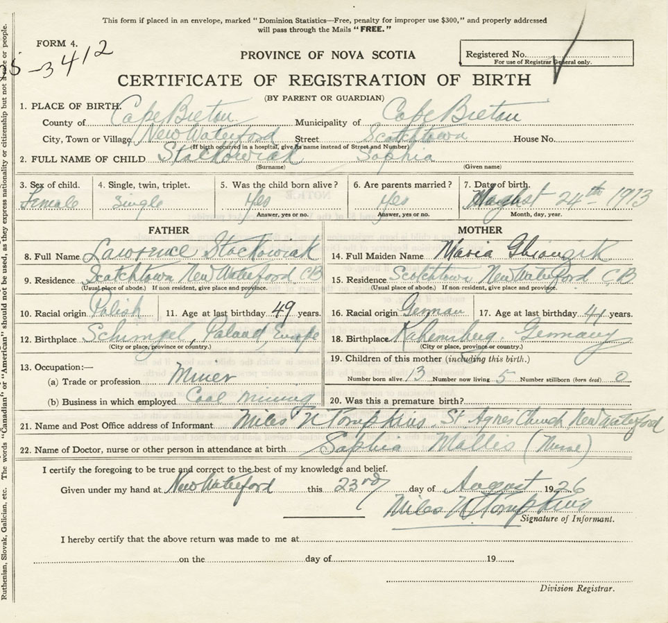 Nova Scotia Archives — https://archives.novascotia.ca/vital-statistics/birth/?ID=285585