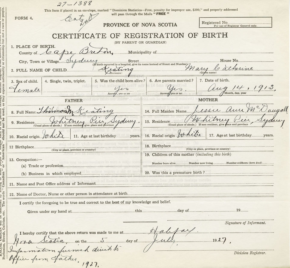 Nova Scotia Archives — https://archives.novascotia.ca/vital-statistics/birth/?ID=285591