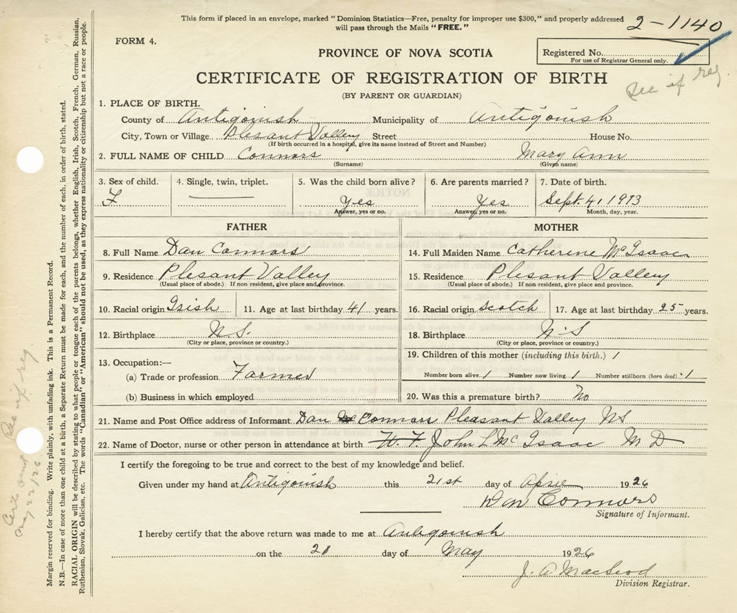 Nova Scotia Archives — https://archives.novascotia.ca/vital-statistics/birth/?ID=285599