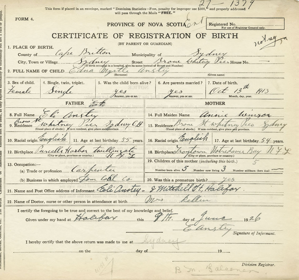 Nova Scotia Archives — https://archives.novascotia.ca/vital-statistics/birth/?ID=285600