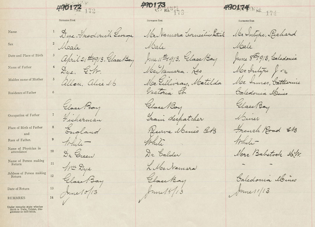 Male Birth Registration: Year: 1913 number: 49000172