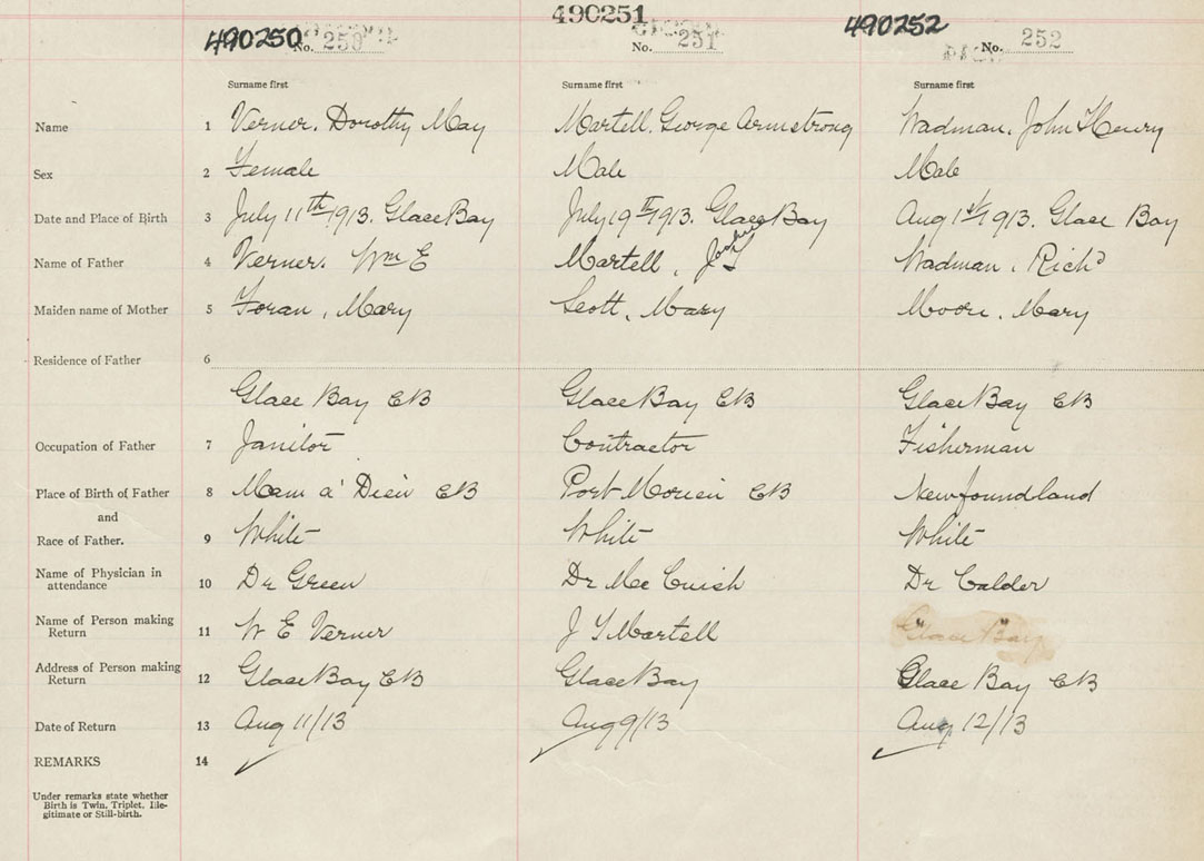 Male Birth Registration: Year: 1913 number: 49000252