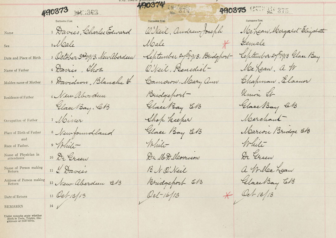 Male Birth Registration: Year: 1913 number: 49000373