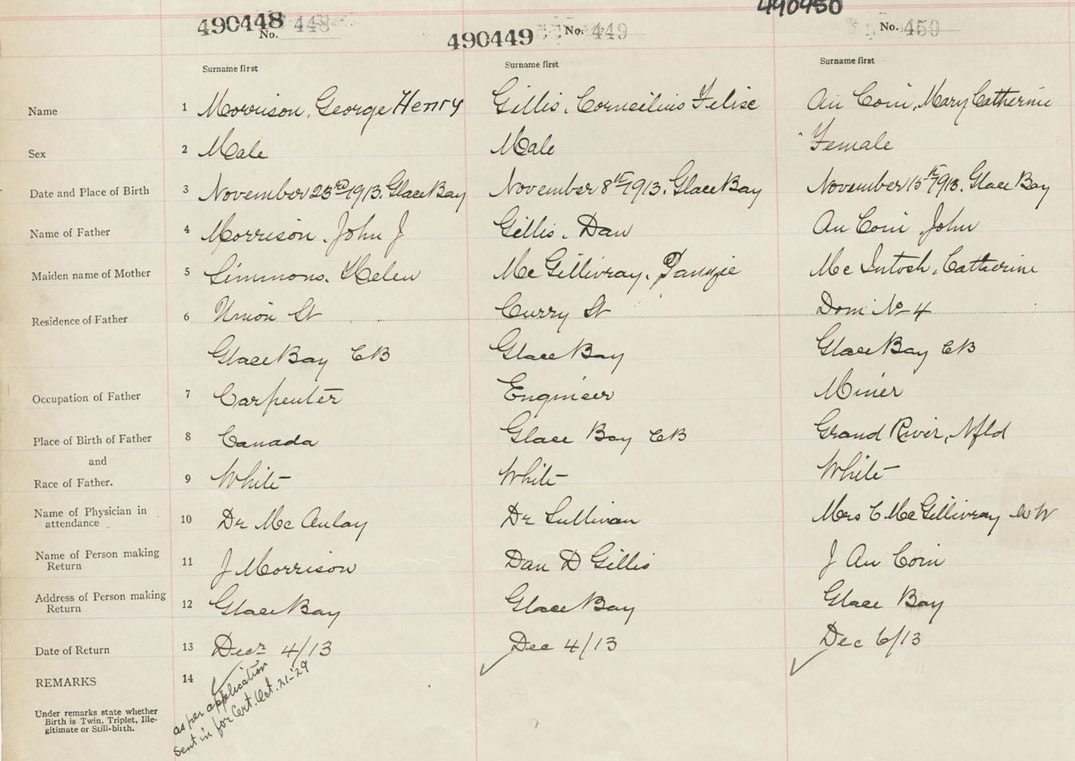 Female Birth Registration: Year: 1913 number: 49000450