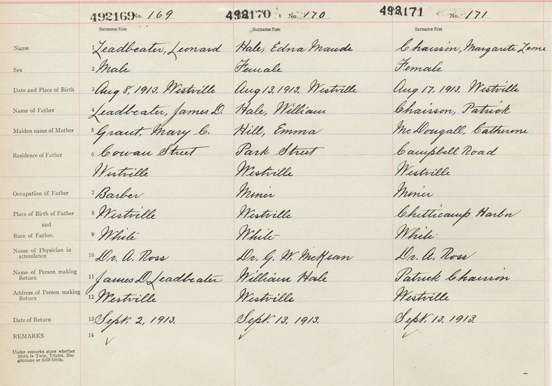 Male Birth Registration: Year: 1913 number: 49200169