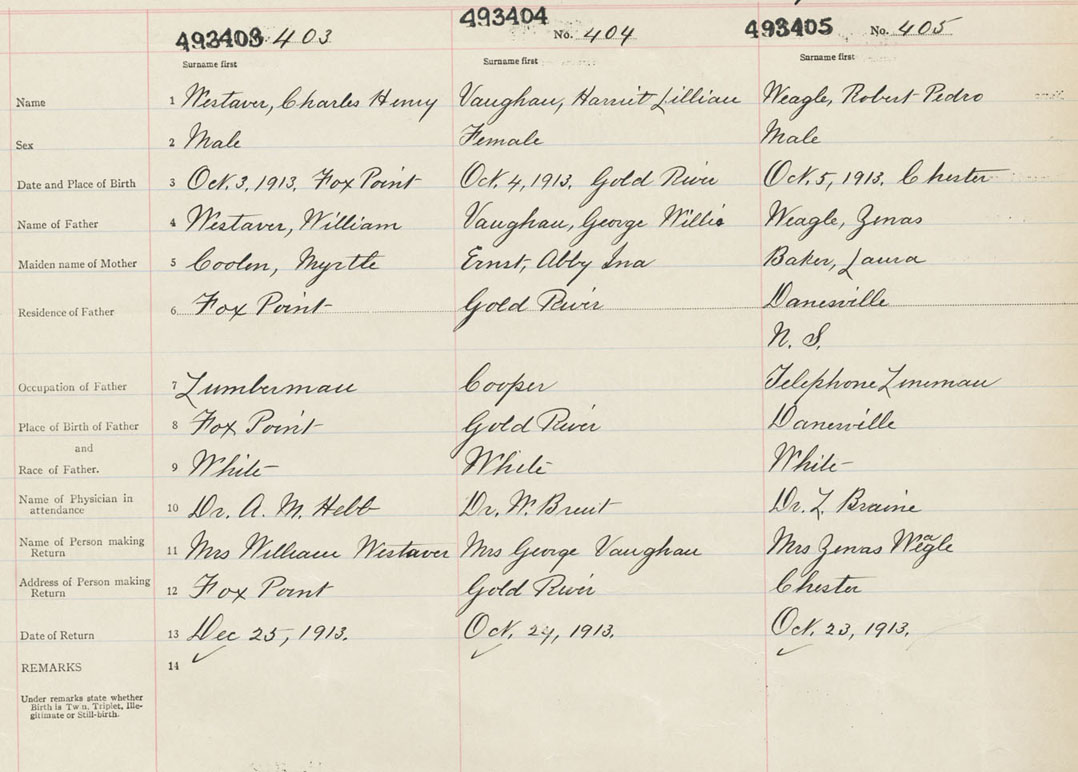 Male Birth Registration: Year: 1913 number: 49300405