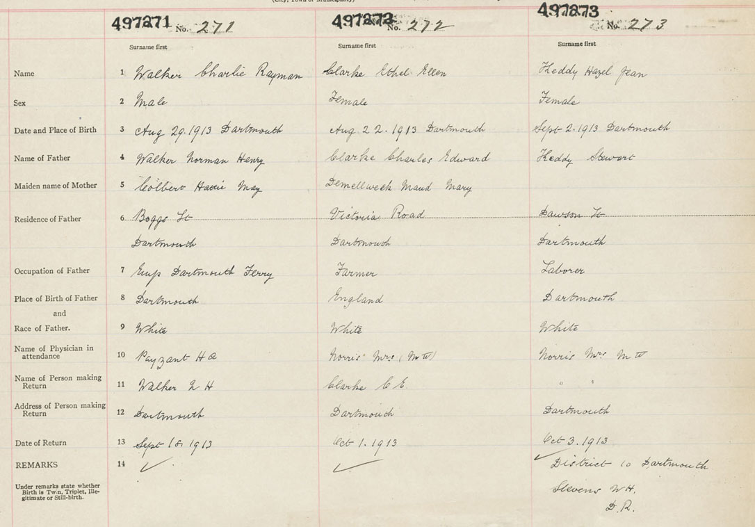 Female Birth Registration: Year: 1913 number: 49700273