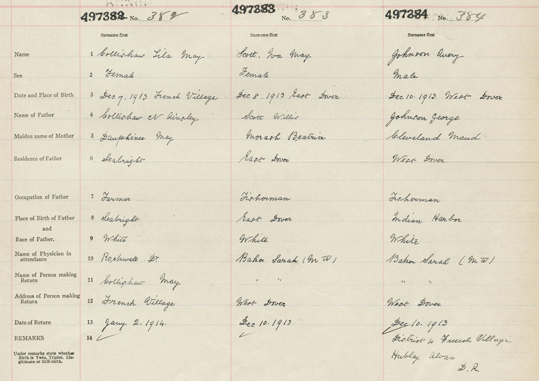 Female Birth Registration: Year: 1913 number: 49700382