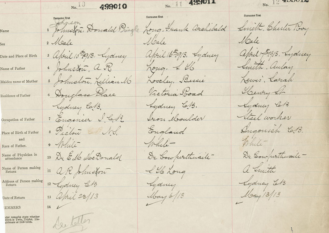 Male Birth Registration: Year: 1913 number: 49900010