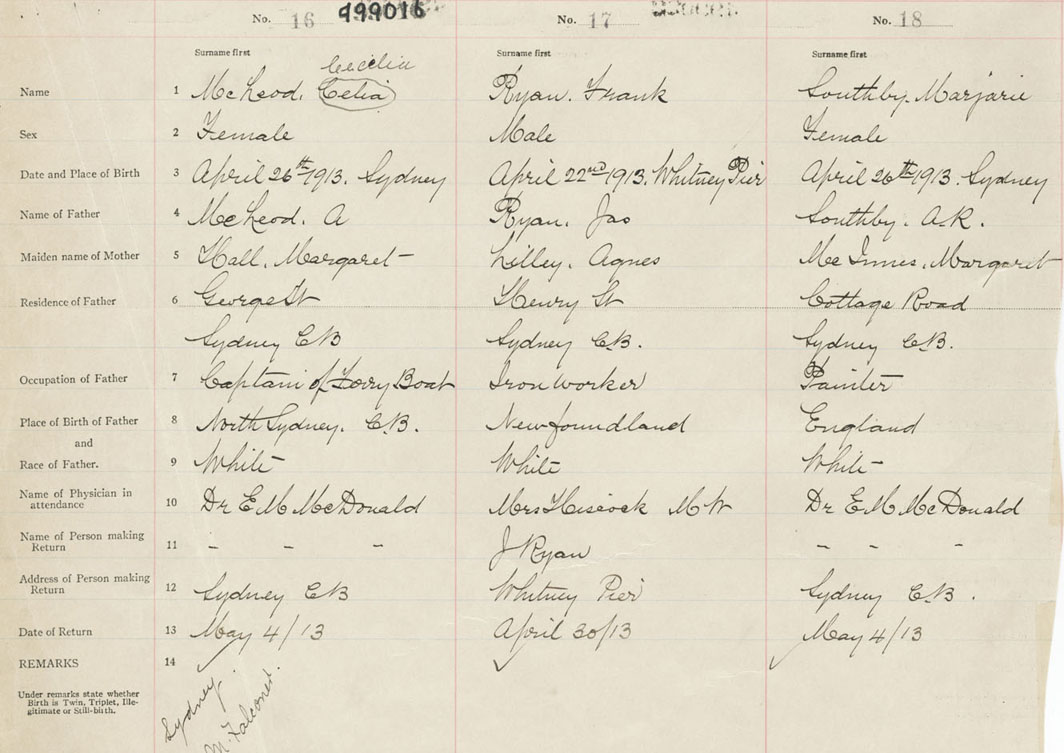 Female Birth Registration: Year: 1913 number: 49900016