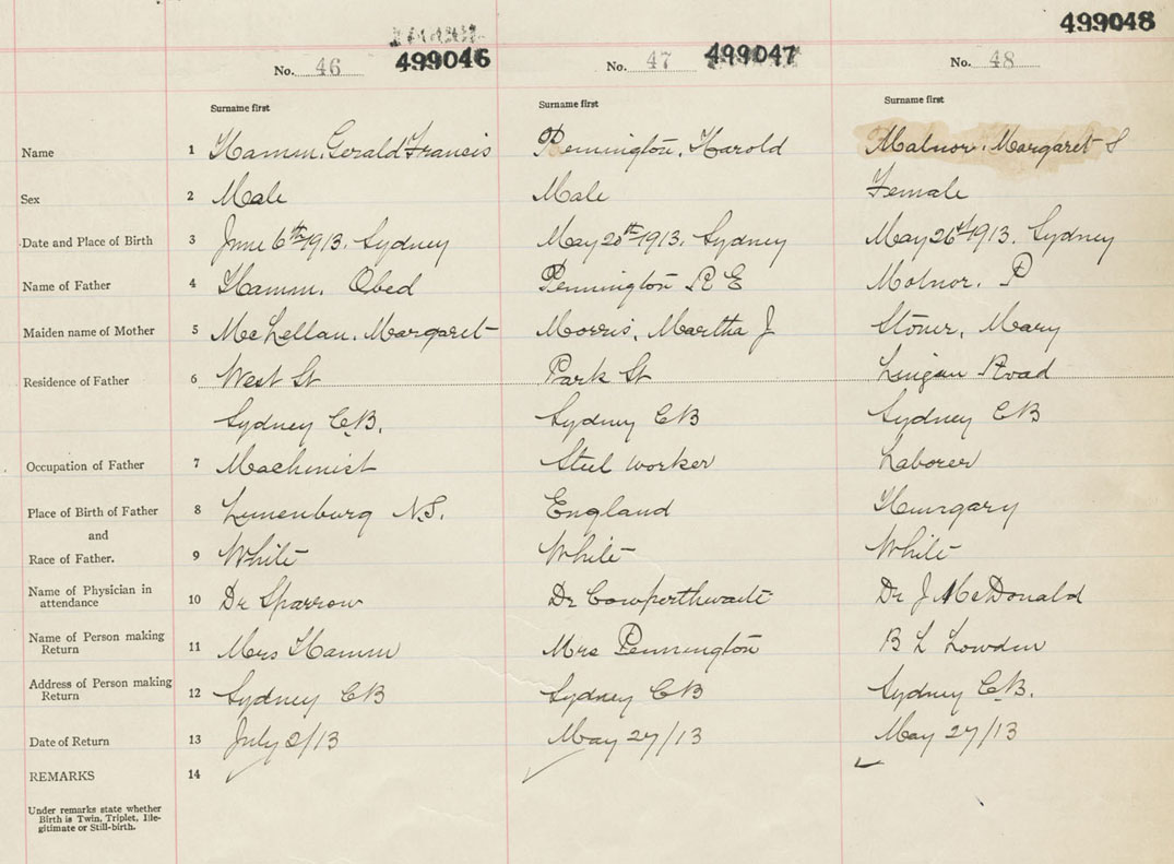 Male Birth Registration: Year: 1913 number: 49900046