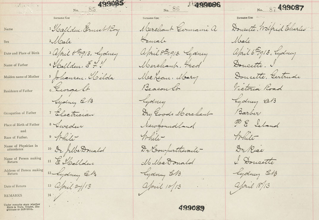 Male Birth Registration: Year: 1913 number: 49900085