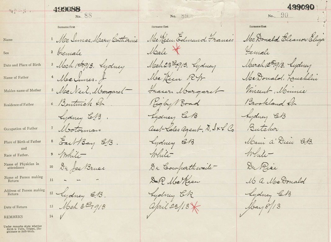 Male Birth Registration: Year: 1913 number: 49900088