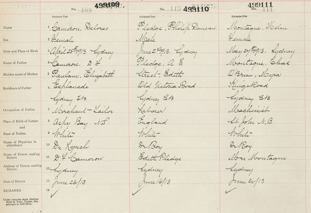 Female Birth Registration: Year: 1913 number: 49900109
