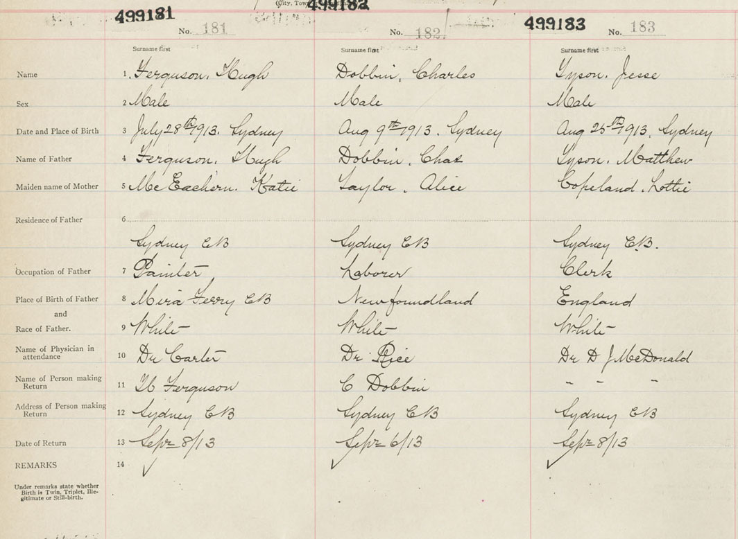 Male Birth Registration: Year: 1913 number: 49900183