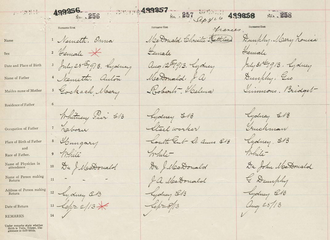 Female Birth Registration: Year: 1913 number: 49900258