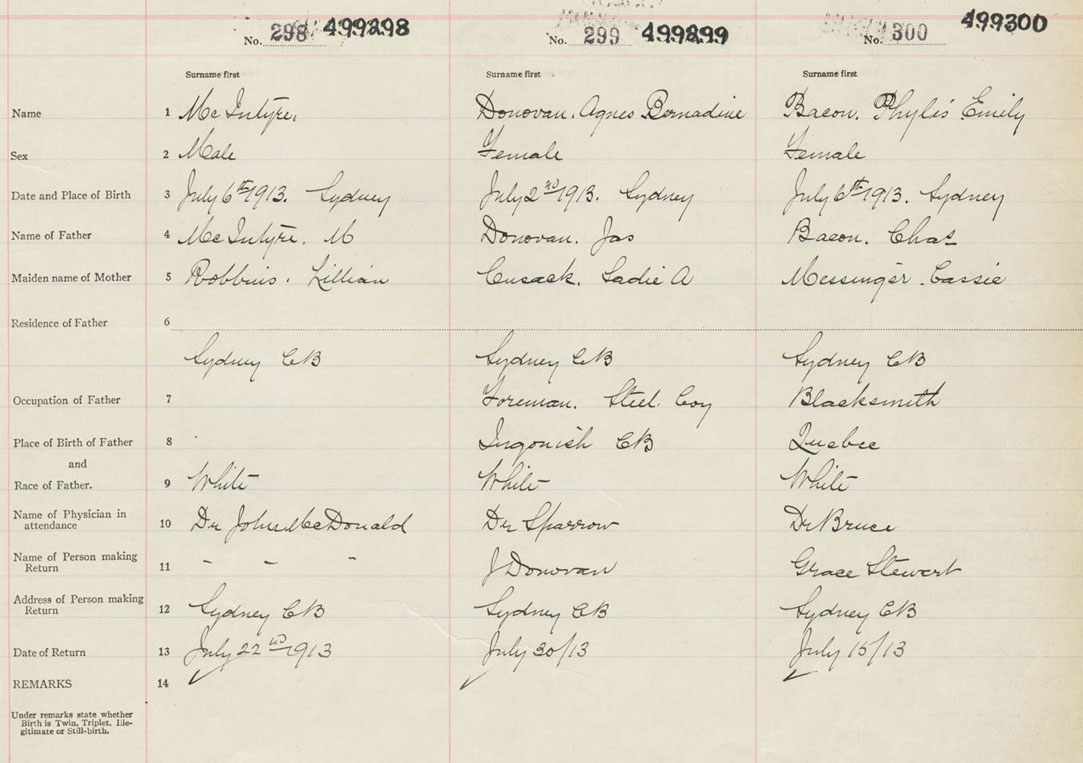 Female Birth Registration: Year: 1913 number: 49900300