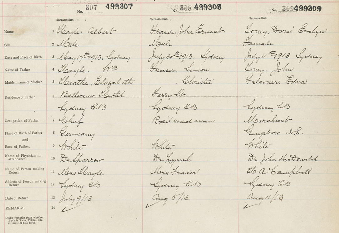 Female Birth Registration: Year: 1913 number: 49900309