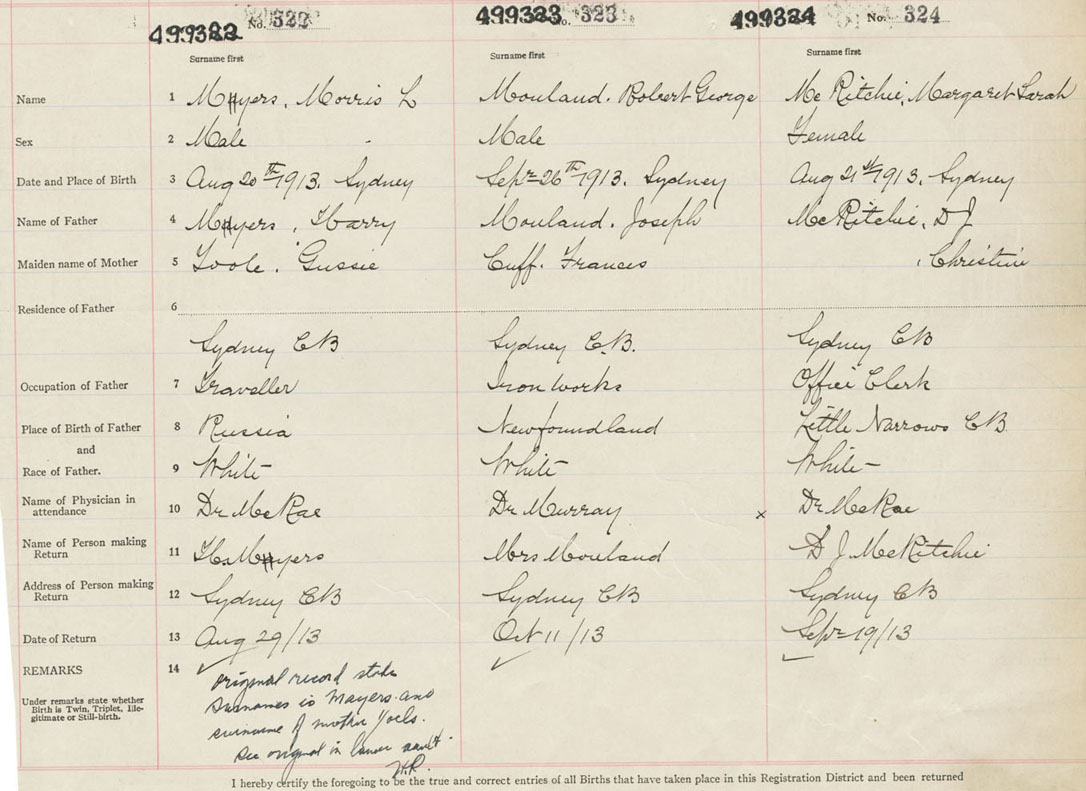 Female Birth Registration: Year: 1913 number: 49900324