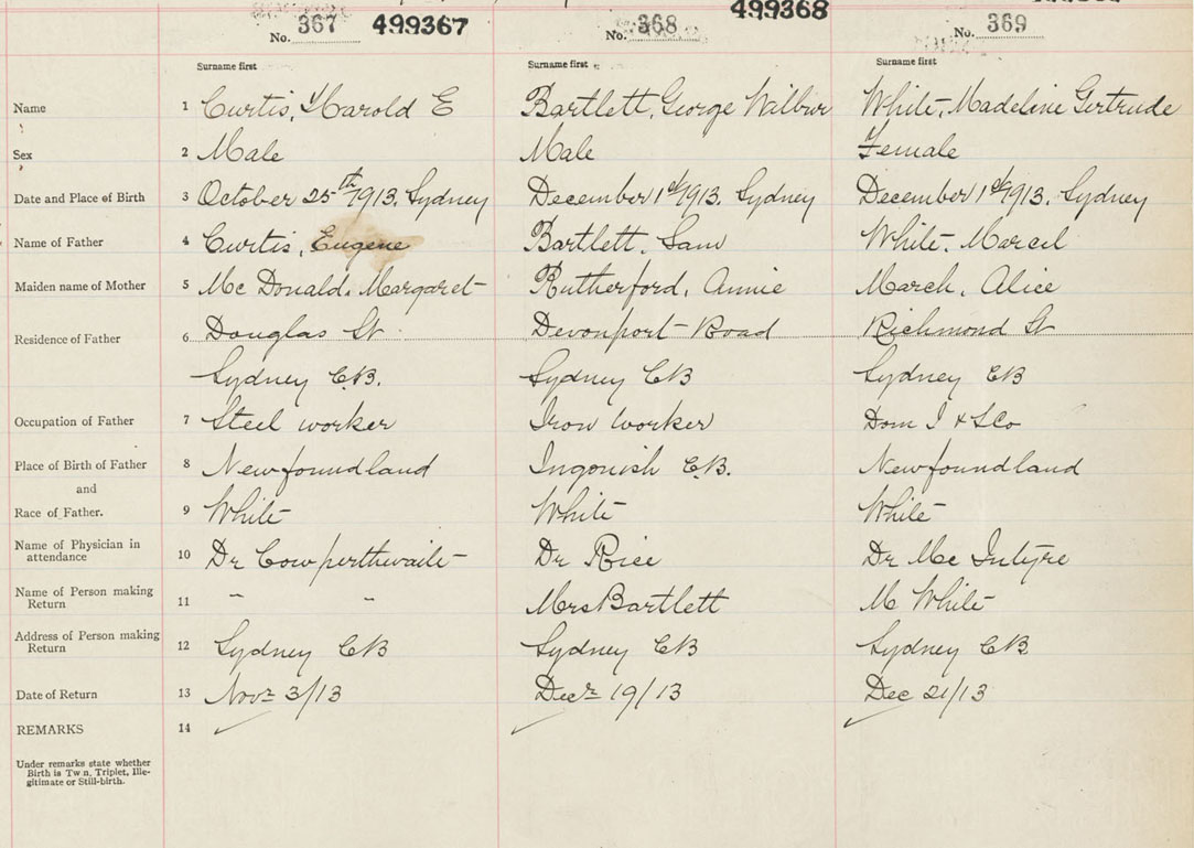 Female Birth Registration: Year: 1913 number: 49900369