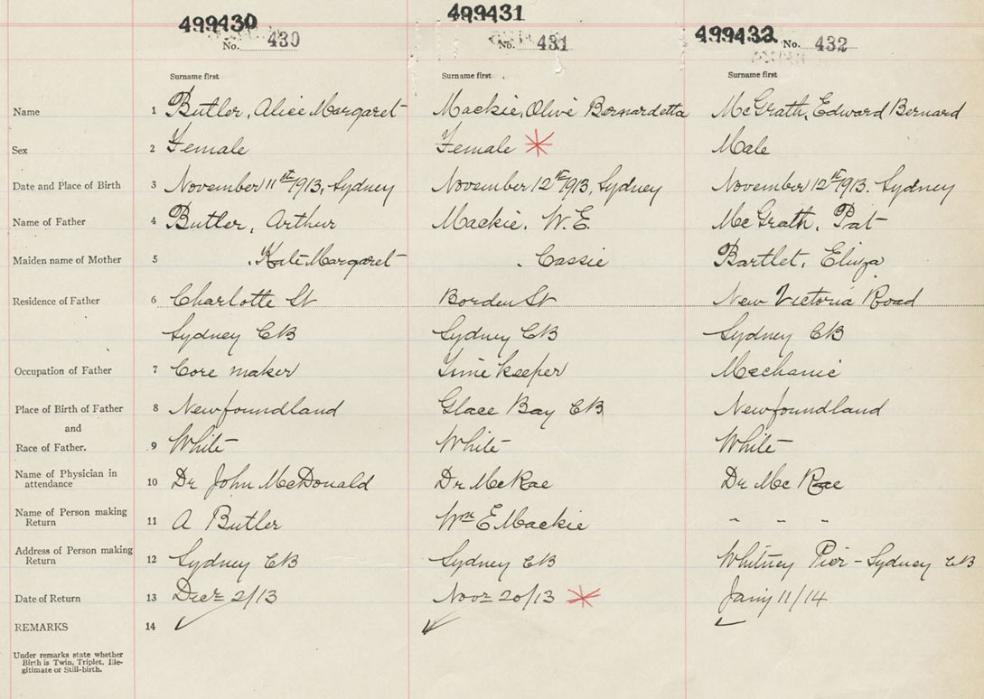 Female Birth Registration: Year: 1913 number: 49900430
