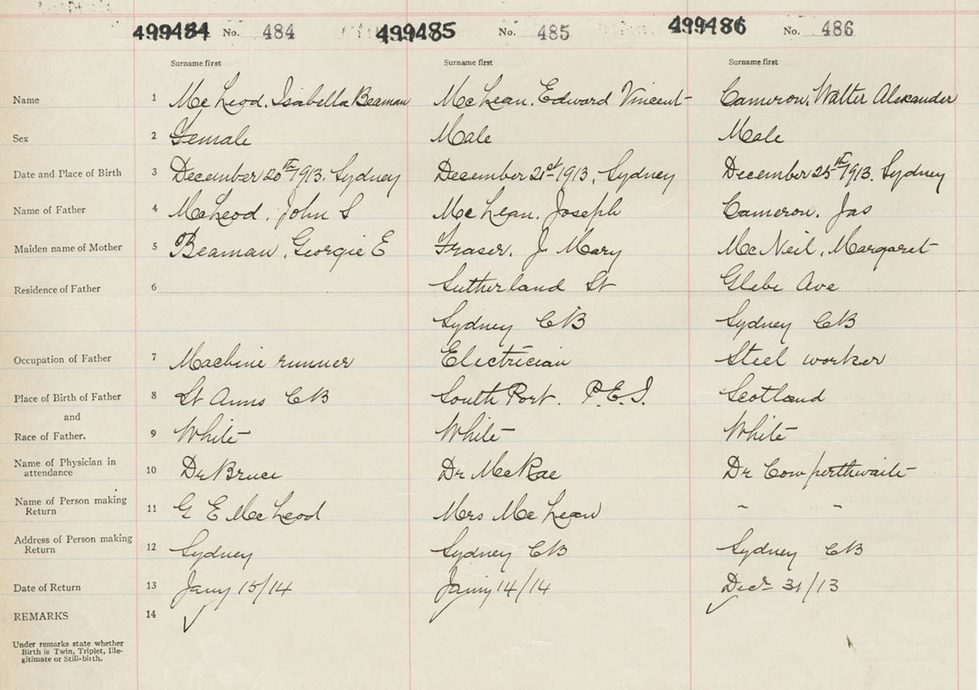 Female Birth Registration: Year: 1913 number: 49900484