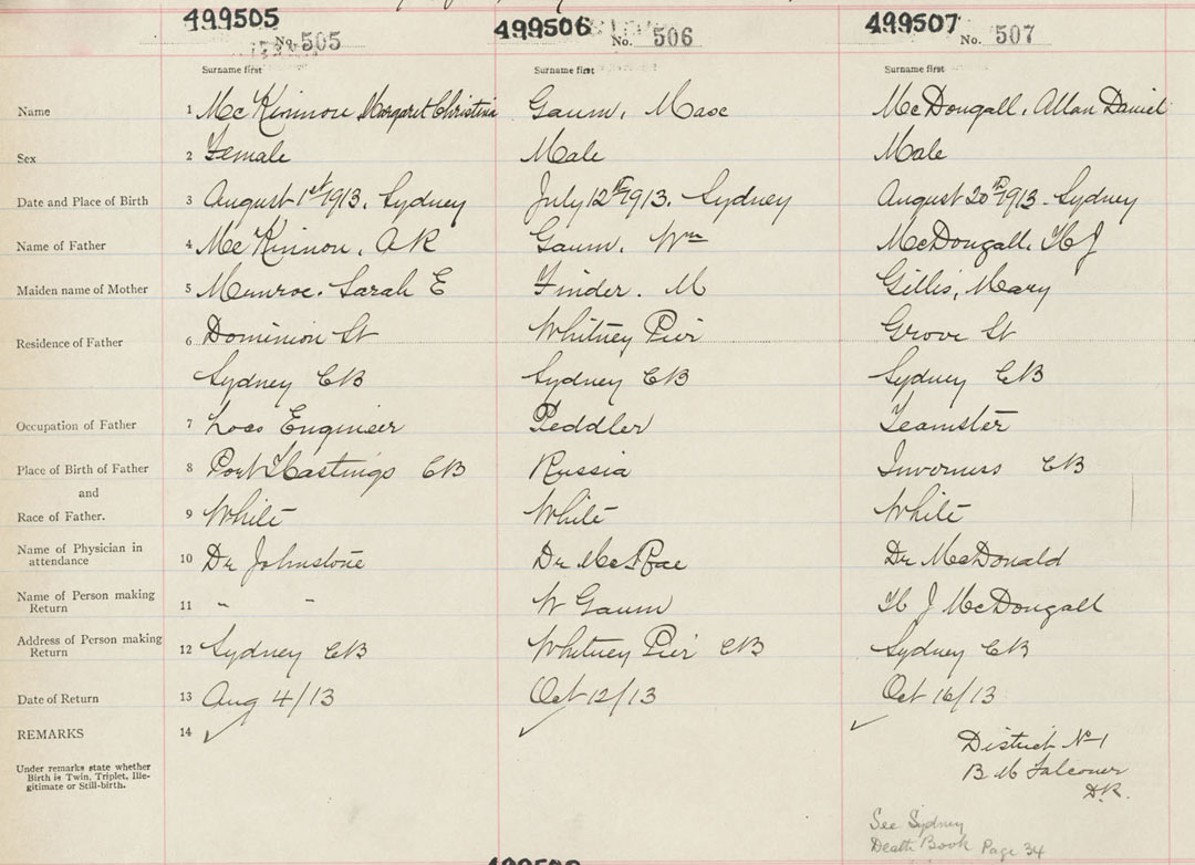 Female Birth Registration: Year: 1913 number: 49900505